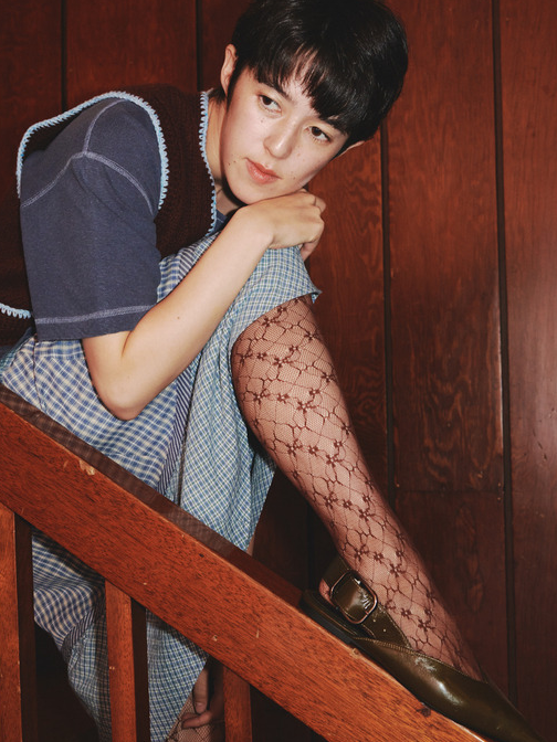 [IHM240911B] 플라워 자카드 레이스 스타킹 브라운